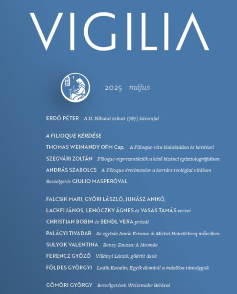 A májusi szám tematikus összeállítása a Filioque kérdéskörét tárgyalja. Görföl Tibor bevezetése után Thomas Weinandy OFMCap A Filioque-vita kialakulása és megoldatlan kérdései, Szegvári Zoltán Exitus acta probat? – Szándékosan téves Filioque-reprezentációk a késő bizánci episztolográfiában és András Szabolcs A Filioque-tétel tartalmának értelmezése a kortárs teológiai vitában című tanulmányát olvashatják. A témához kapcsolódik Giulio Masperóval, a római Santa Croce Pápai Egyetem teológiai karának dékánjával Rethinking the Filioque with the Greek Fathers (Eerdmans, 2003) című könyve alapján készült interjú a Vigilia beszélgetése rovatban.