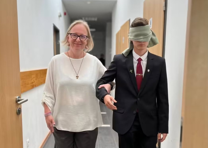 A játékban bekötött szemmel kellett végigmenniük az iskola folyosóin egy kötelet követve; ha elakadtak, mentortanáraik segítették őket a továbbhaladásban – ami a közös munka szép metaforája volt. A diákok kisebb csoportokban, négy különböző állomáson beszélték meg tapasztalataikat. Az állomásokon egy-egy mentortanár és Lukovits Milán OFM várta őket: velük olyan kérdésekre keresték válaszokat: mi gátolja őket, mik vagy kik segítik őket az akadályok leküzdésében, és milyen tulajdonságokkal érhetik el céljaikat.