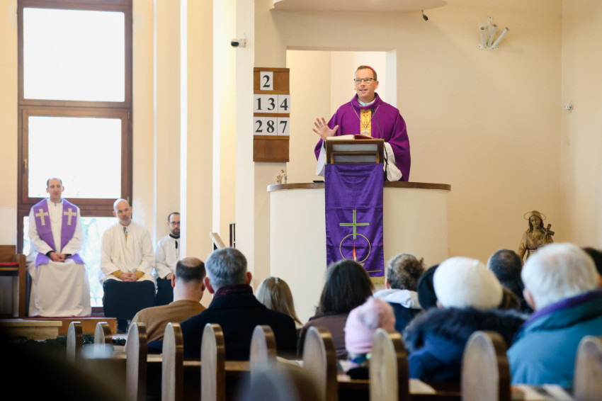 A homíliájában Fábry Kornél püspök saját tapasztalatával bátorította a híveket, hogyan gondolkodjanak a missziós évről, és arra biztatott, tűzzenek ki bátor és konkrét célokat. Elmondta, amikor Kaposfüreden megkezdte papi szolgálatát, egy nyolcvannyolc éves plébánostól vette át a plébániát, aki negyvennégy éven át hűséggel és kitartóan, de a nyolcvannyolc éves ember energiájával tudta vinni a plébániát. Érkezésekor körülbelül negyvenen jártak vasárnaponként a két misére. Belevágtak az építkezésbe, fizikai és közösségi értelemben is; bővítették az épületet. Kornél atya hitt abban, hogy hamarosan százak kell, hogy otthonra találjanak benne, hitt abban, hogy a közösség az Egyház jövője. „A világ sokat tud adni, de közösséget nem” – indítottak el ezért többek között Alpha-kurzust, szerveztek férfikört, és bevezették a folyamatos szentségimádást.