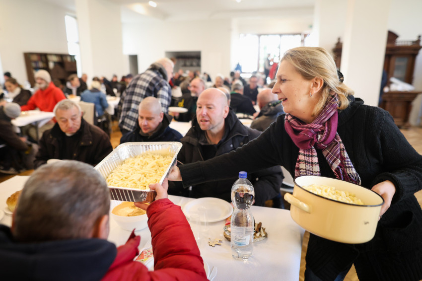 A hívek az agapén már arról beszélgették, kit hova fognak elhívni. A missziós évben bőven van hova: Alpha-kurzus, Szentlélek-szeminárium, szentségimádások, missziós estek, kirándulások, szeretetvendégség szervezése, imaalkalmak, koncert, bál... Mindenki vihetett haza a missziós év programfüzetéből. Közben a Mária-teremben megkezdődött a hajléktalan vendégeknek készült ebéd. Zene mellett fogyasztották a bográcsban főtt paprikás csirkét, és hosszan beszélgettek vidám hangulatban.