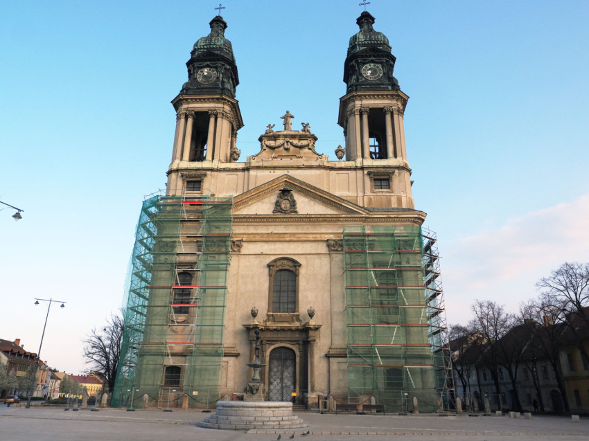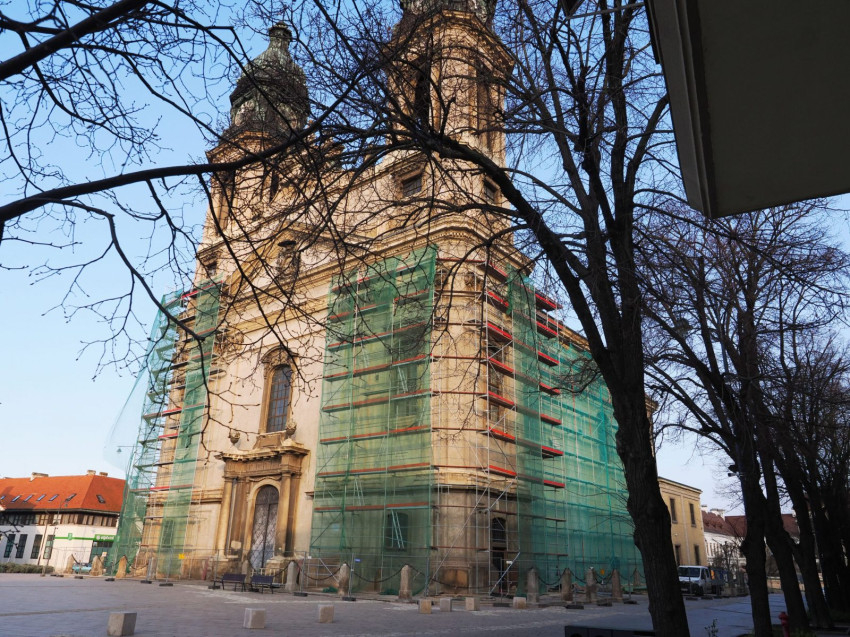Gréczi Zoltán fejlesztési igazgató tájékoztatása szerint az első ütemben már több feladatot is elvégeztek a szakemberek. Megerősítették a hajó, a szentély és a toronysisakok tetőzetét, a padlástérben folyamatban van a károsodott faszerkezetek bárdolása. Elbontották a két torony közti hidat, megépült az új rácsos szerkezet. Megépült a kupola belső állványzata, amelyről a szerkezeteket injektálással erősítik meg, és ennek segítségével a repedéseket közelről is meg tudják vizsgálni. A rendkívül értékes falfestések állapotát megvizsgálták és a műemléki dokumentációt is elvégezték. Közelről az is láthatóvá vált, hogy a freskók a korábban feltételezettnél rosszabb állapotban vannak.