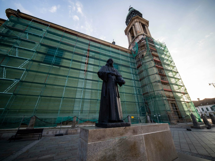 Más templomokban vonórúdszerűen bent vannak az acélszerkezetek. Ebben a templomban esztétikailag ez vállalhatatlan volt. Tehát abban kezdtünk gondolkodni, hogyan lehet fölülről megfogni, hogy a szerkezetek csak fönt, a padláson legyenek. Ez egy lényegesen drágább és körülményesebb megoldás, de így az acélhuzalokból gyakorlatilag semmit sem fogunk látni – hangsúlyozta Orosz Árpád, aki hozzátette még, ezzel a módszerrel már mintegy ötven templomban dolgoztak nagy sikerrel.