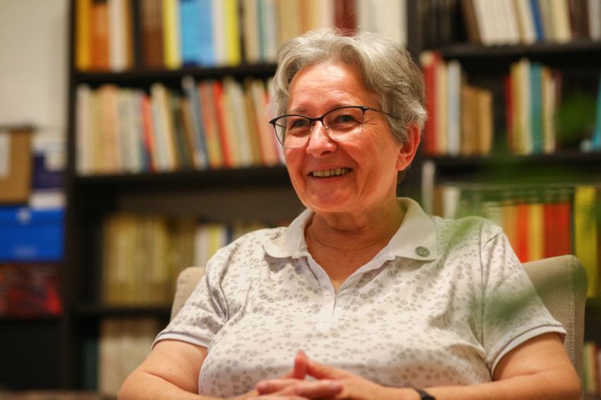 – 1991 fontos időszak volt az életünkben. A rendszerváltás után a szerzetesközösségek előjöttek az illegalitásból. Abban az évben volt egy nagy káptalanunk, amire Amerikából is szép számmal érkeztek testvérek. Akkor ráeszméltem, hogy meg kell tanulnunk angolul, ha meg akarjuk érteni egymást, így kértem, hogy elmehessek angolt tanulni. Először Buffalóban, majd Kaliforniában éltem és tanultam. 1992 végén tértem haza, és visszamentem tanítani a kisegítő iskolába. 1993-ban rám bízták a közösségen belül a fiatal fogadalmas testvéreket. 1997-ben eljutottam a Fülöp-szigetekre, ahol részt vettem a testvérek életében. Onnan hazatérve kerültem a Rákóczi tér közeli iskolába először hittantanárként, majd gyógypedagógusként is, hiszen akkor már fejlesztést kellett biztosítani a tanulási nehézséggel küzdő gyerekeknek. 2008-ban világossá vált számomra, hogy váltanom kell, nagyon nehéz volt az állami iskolában. Akkor találtam rá a Kolping-iskolára, amit nagyon megszerettem.
