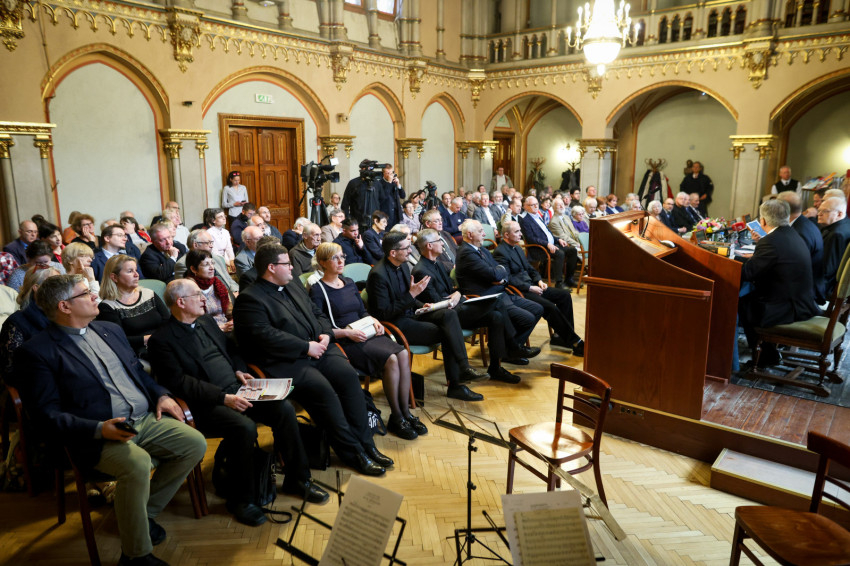 Puskás Attila munkásságát Martos Levente Balázs esztergom-budapesti segédpüspök, egyetemi tanár, a Központi Papnevelő Intézet rektora laudálta, kiemelve, hogy a kitüntetett milyen meghatározó módon járult hozzá a teológiaoktatás és a hitre való reflexió műveléséhez. „Isten barátjának” nevezte őt, aki tanárként és íróként egyaránt „sokat tett azért, hogy ki ne üresedjen a Róla szóló beszéd”. Puskás Attila megemlékezett elődjéről, Fila Béla dogmatikaprofesszorról, majd mintegy ars poeticaként Hans Urs von Balthasar svájci teológust idézte: „A teológia nem más, mint Krisztusra mutató ujj.”