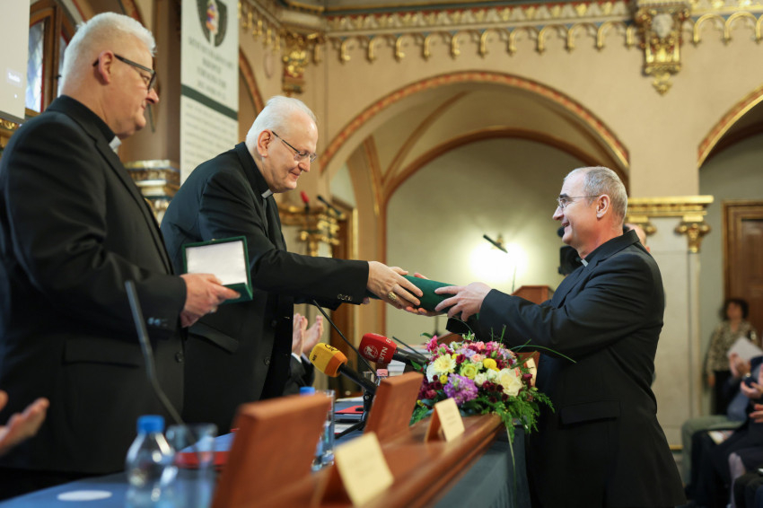 A szemezgetést követően Spányi Antal megyéspüspök, a Stephanus Alapítvány elnöke ismertette, hogy idén kik kapták az 1993-ban alapított Stephanus-díjat. Emlékeztetett rá, hogy a kitüntetettek „olyan szerzők, akik magyar nyelven megjelent műveikben, publikációikban az egyetemes, keresztény-európai kultúra értékrendjét közvetítik, mind a teológiai tudományok, mind pedig az irodalmi műfajok terén”. Erdő Péter bíboros az irodalmi kategóriában Mezei Balázsnak, teológiai kategóriában pedig Puskás Attilának adta át az elismerést. Gájer László teológus, tanszékvezető egyetemi tanár Mezei Balázst méltatta. A díjazott elmondta, hogy az Istenről való gondolkodás feladata már gyerekkorától foglalkoztatta, végül Babits Mihálytól a Jónás könyvét idézte: „…mennél csúfabb mélybe hull le szolgád, / annál világosabb előtte orcád.”