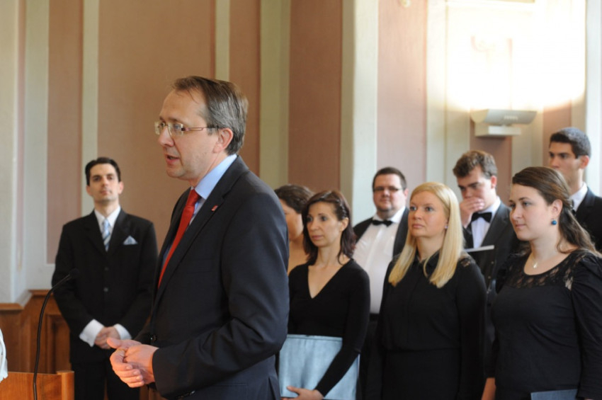 Klaus Küng püspök elmondta, hogy különösen a rendszerváltás óta érdeklődéssel figyeli a magyarság sorsát, érzi azt a közös „nyelvet”, mely a művészet, a festészet, a zene eszköztárán keresztül a kölcsönös megértést biztosítja különösen a keresztény tematikán belül. Liturgikus tárgyak, értékes festmények üzenetében a minőség és a szépség összhangja nyilvánul meg, s a harmónia elmélyíti a hitet a szemlélőben.