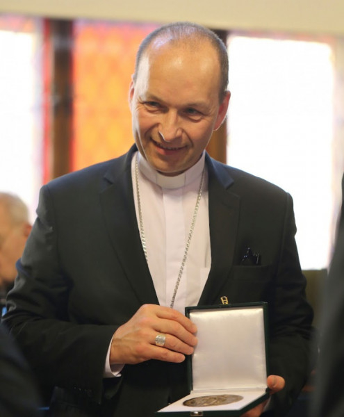 Käfer István a laudációban kiemelte, az új Pozsonyi Főegyházmegye jól sáfárkodik az örökölt történelmi értékekkel. Így Jozef Haľko munkásságában minduntalan „visszaköszön az esztergomi megbékélő megbocsátó, bocsánatot kérő közös szentmise. Tudatosan építi vissza a szlovákok és mindannyiunk számára Szent István örökségét. Szent István országának nem magyar ajkú polgárai ugyanis egyenrangú hungarusok voltak”.