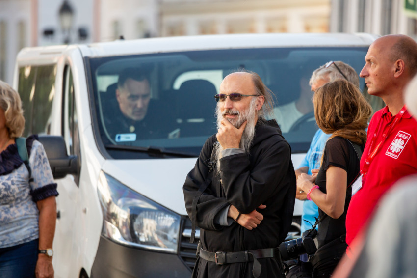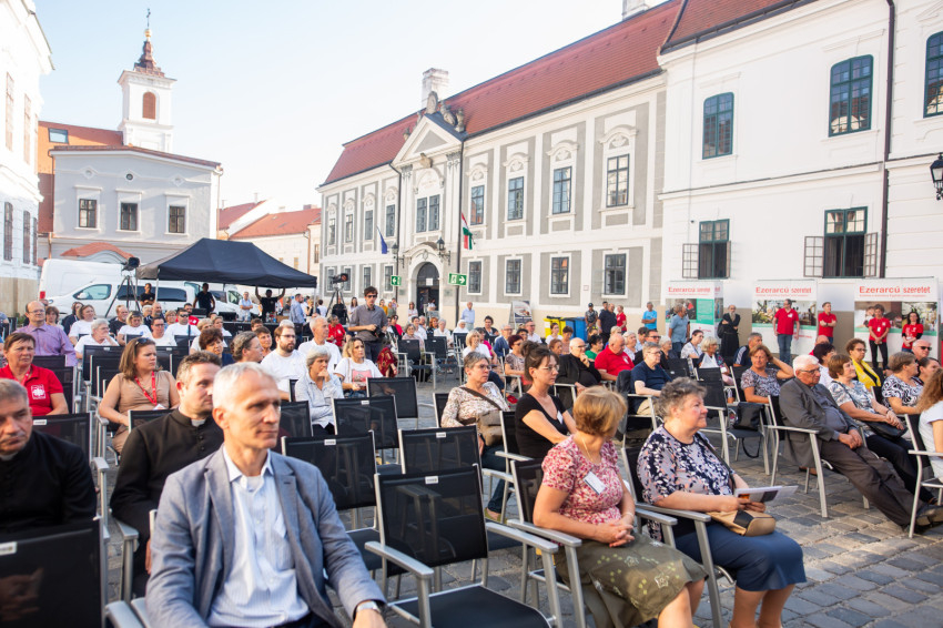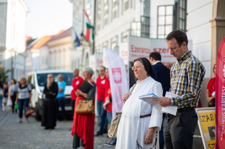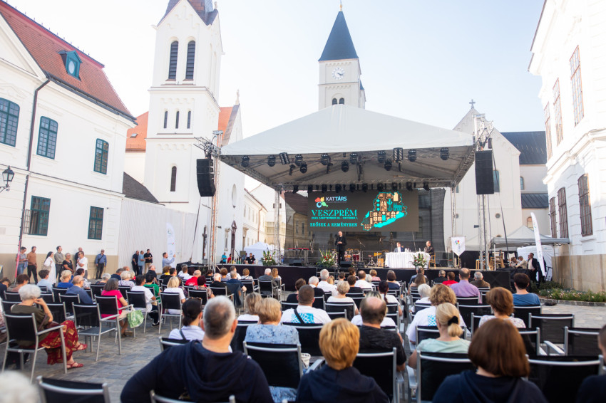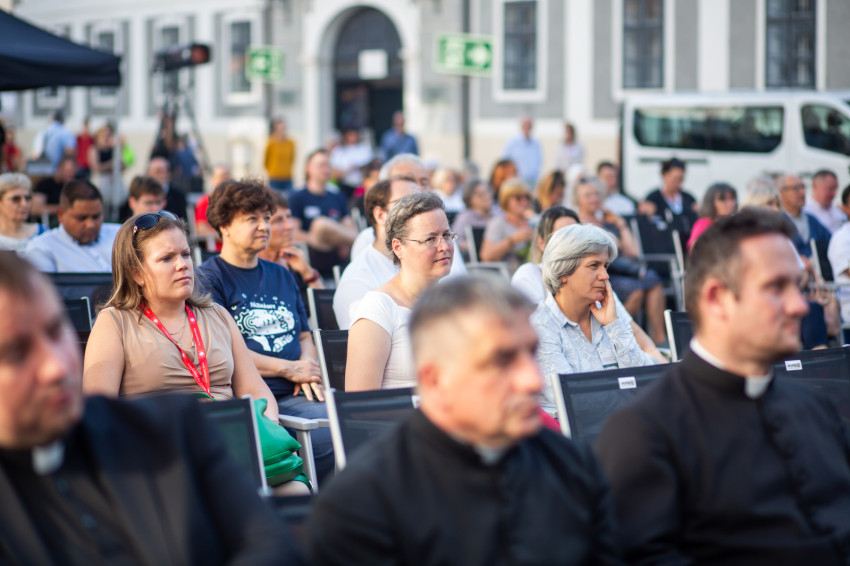 A Szentháromság téren Székely János szombathelyi megyéspüspök, az MKPK Caritas in Veritate Bizottságának elnöke, a KATTÁRS rendezvény felelős szervezője és Udvardy György veszprémi érsek mint házigazda köszöntötte az érdeklődő közönséget.