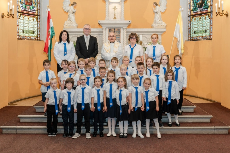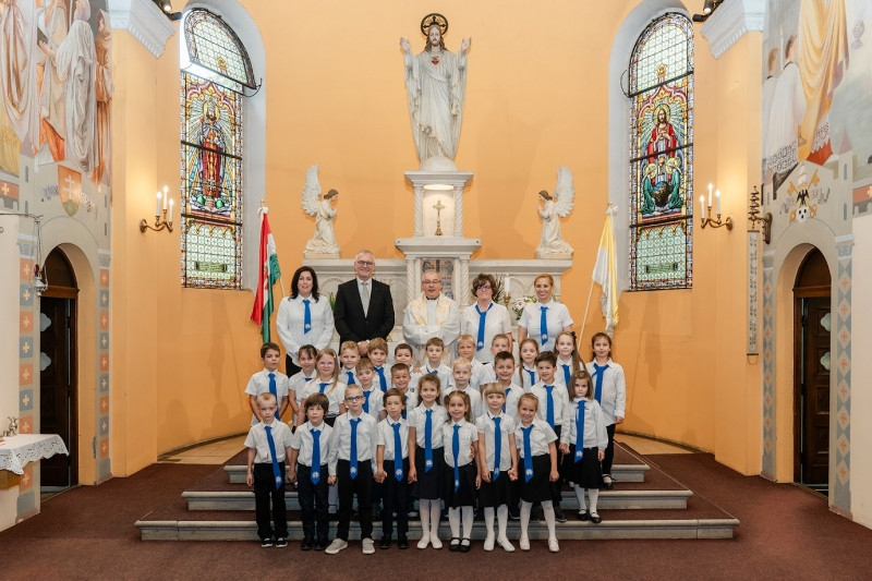 Az ünnepi szentmise keretében Virágh József plébános személyes és szeretetteljes köszönetével fordult Puskás Balázs főigazgatóhoz, és bemutatta a katolikus iskola vezetőjét, tanítóit, katekétáit és munkatársait. Somogyi Ervin a szülők nevében mondott köszönetet.