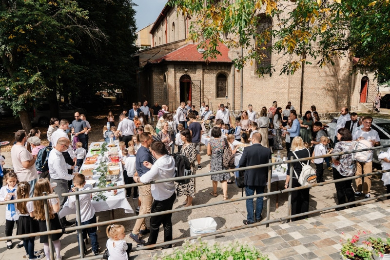 A Veni Sancte szentmisét agapé követte a templomkertben, ahol az ünneplő közösség tagjai személyes beszélgetésekben folytatták a találkozásokat, és megtekinthették az iskola osztálytermeit.
