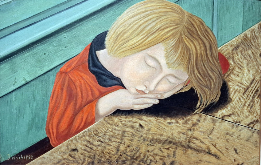 Muszáj néhány szót ejtenünk Adolf Dietrich Esti hangulat az Unterseenél című művéről is, ami teljesen más, mint az eddig látott képek. Erős vörösessárgák és kékek uralják a vásznat, s expresszív módon ábrázolják a naplementét. Dietrich számára az önkifejezés fontosabb a transzcendenciánál.