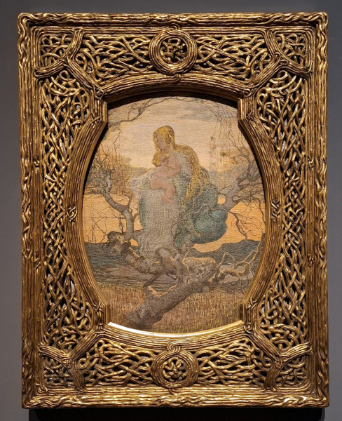 „A művészet számomra valóban olyan, mint egy elveszett paradicsom” – írta Albert Anker 1853-ban. A kiállítás első termeiben elsősorban az ő festményeivel találkozhatunk. Az indítókép azonban Giovanni Giacometti műve, az Anyaság (1908), amely talán az egész tárlat emblematikus alkotása lehetne. Álomszerűen derűs, napsütötte, virágos kertben ül egy anya három gyermekével. A bájos jelenetben aranysárga színek keverednek sárgászöldekkel, a háttérben rózsaszín virágok. A festmény valóban jól kifejezi a kiállítás címét: mintha csak földi paradicsomban járnánk.