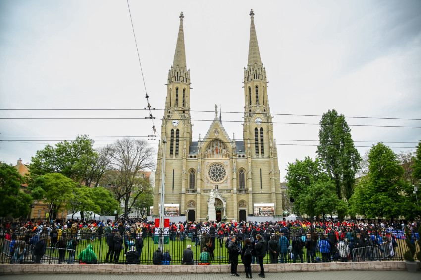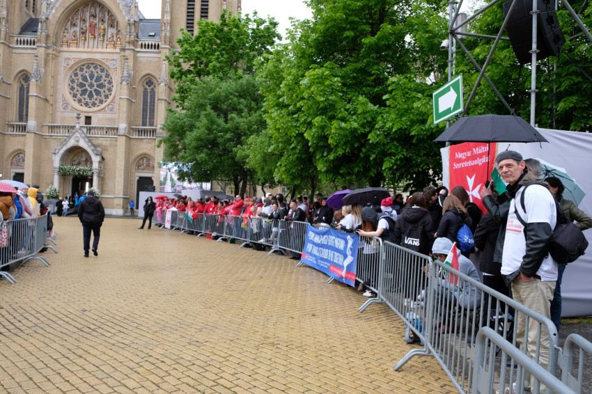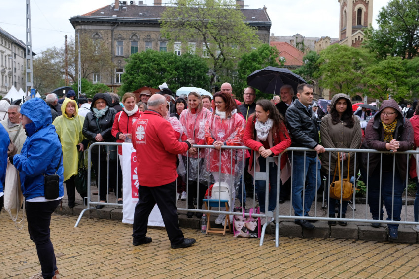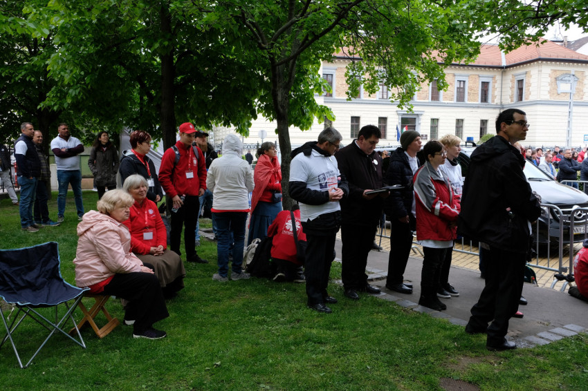 A szakképzőikbe járó középiskolás diákok is jöttek erre az alkalomra Dombóvárról, Gyöngyösről, Devecserről és Budapestről, őket elkísérték a pedagógusok is. „Ferenc pápa jelenléte felemelő – mondja Tibor. – Tegnap az egyik pap ismerősöm írta a bazilikában szerzett élményei után, hogy általa tényleg a jézusi szeretet jön közénk. Ez az érzés megérkezett ide is, ahogy behajtottak a kertbe az autóval. Én egy kicsit hiányoltam itt a templomkertben annak az örömét, hogy lélekben együtt élhetjük meg ezt, hiszen láttam, hogy a templomban milyen jó hangulat volt, amikor a cigányok énekeltek neki.”
