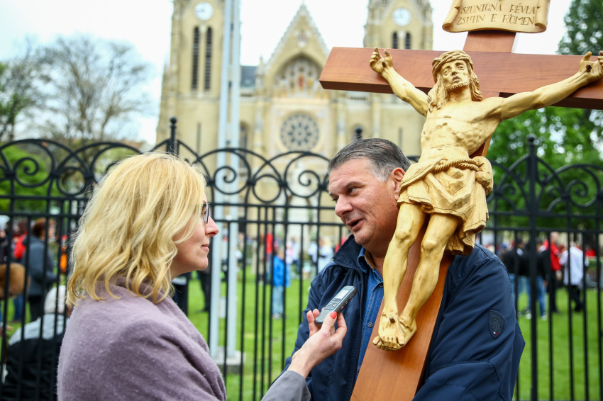 A távozó tömegben nem nehéz észrevenni a csatkai cigánykeresztet. Megszólítom Kövesi Csabát, aki a vállához szorítja a feszületet. „Nagy dolog, hogy Ferenc pápa ilyen rövid időn belül másodszor is eljön Magyarországra. Vártuk őt. Tisztelet tisztelettel jár – mondja. – Mint ahogy az eucharisztikus kongresszus idején, úgy most is körbejártuk az országot a kereszttel, és hívtuk a testvéreket, hívőket, nem hívőket a Kossuth téri pápai szentmisére.” Udvardy György érsek indította útnak őket két héttel a pápalátogatás előtt a kereszt megáldásával. „A mai napon megkaptuk a személyes áldást a pápától, amikor a templomból jött kifelé. A nyitott szív, amivel fogadtuk, megtelt, boldogság töltött el bennünket.”