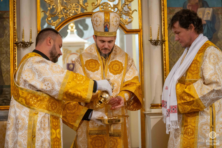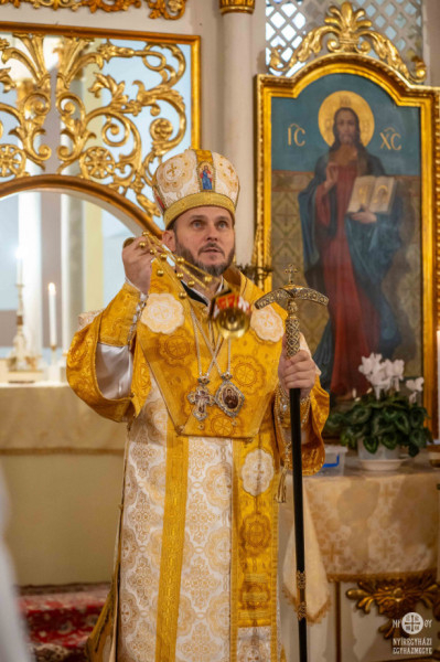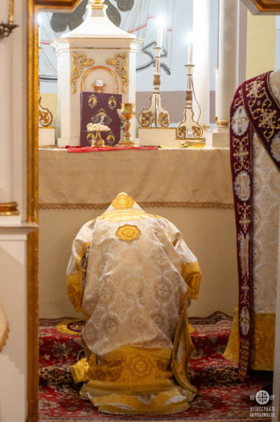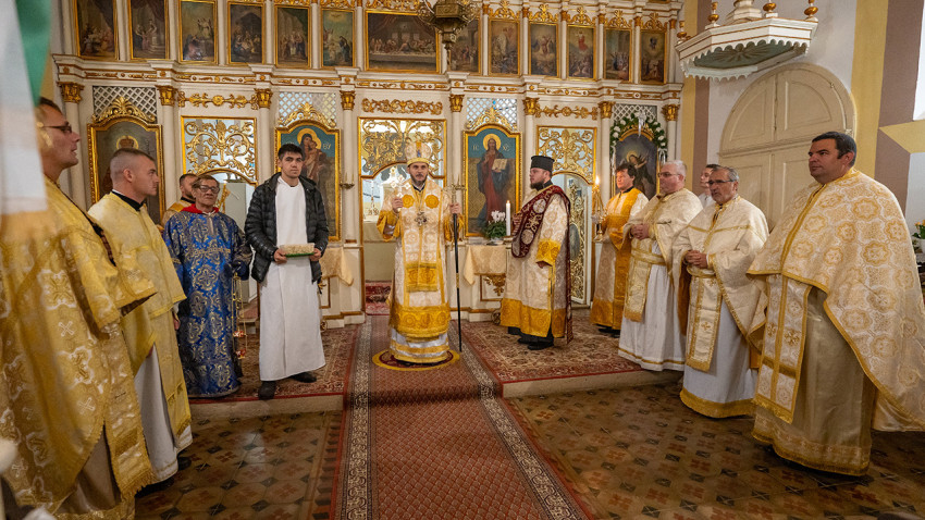 A hősökért végzett Pannachidát és a szentelés szertartását a templomban végezték, majd a papság és az asszisztencia kivonult a főpásztorral a szenteltvízzel való meghintés mozzanatára.