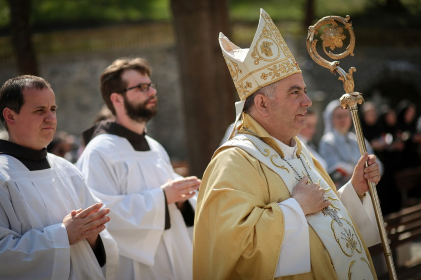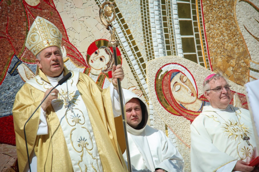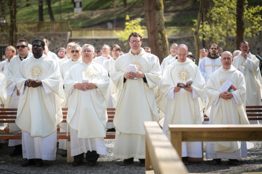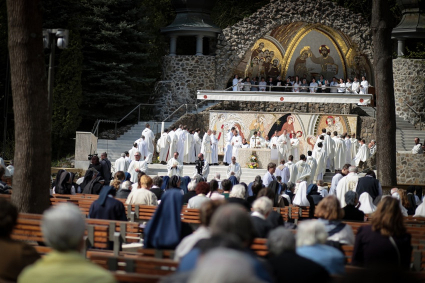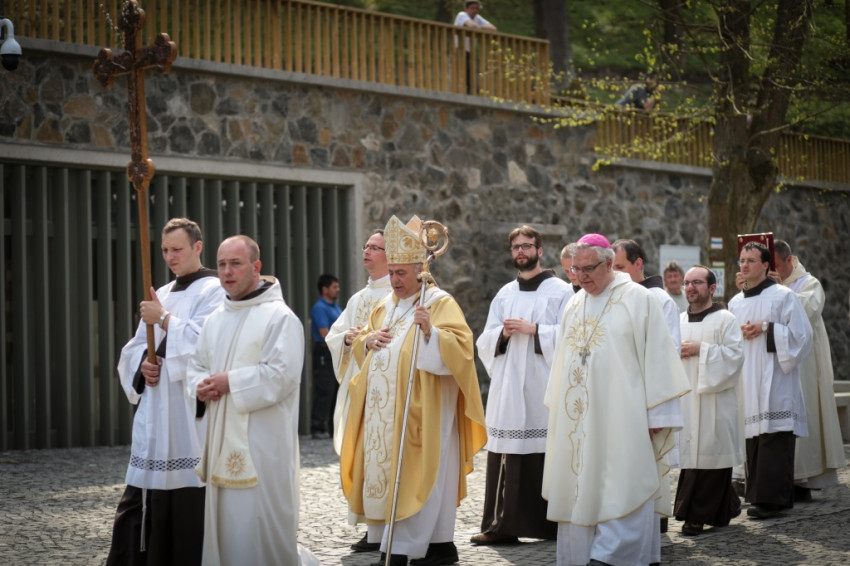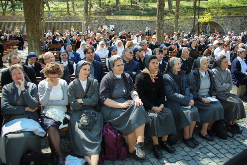 Az érsek homíliájában a húsvéti örömöt idézte fel: az egyház hitének, reményének, szeretetének végső oka Jézus feltámadása. Hangsúlyozta, hogy a húsvéti idő olvasmányai két érzést és egy feladatot adnak a keresztény embernek. A félelmet (az árvaság, becsapottság érzését, a bezárkózást) felváltja az öröm (a feltámadt Jézussal való találkozás), ebből pedig megszületik a küldetés. A megszentelt élet arra kap meghívást, hogy nyissa ki az ajtókat, ne féljen. Ezt akkor tudja megtenni, ha megtapasztalta, hogy Krisztus köztünk van, előttünk megy Galileába.