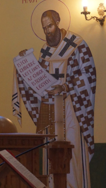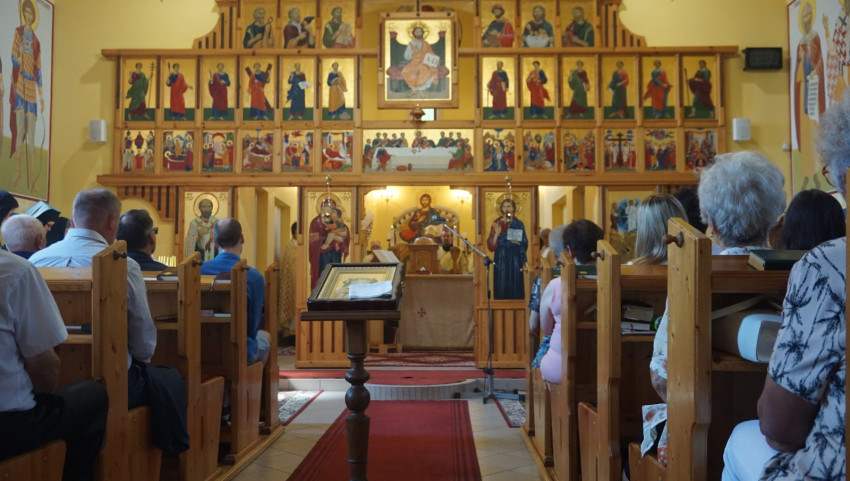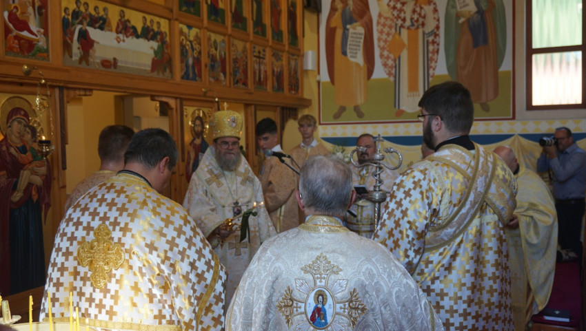 Az ünnepi szertartás az ikonok megszentelésével kezdődött. Hosszabb könyörgő imádságok után elsőként a szentélyben látható Istenszülő-ikont, majd Szent István diakónus és Szent Miklós ikonját szentelte meg a püspök, majd sorban a falakon ábrázolt további szentek képeit.