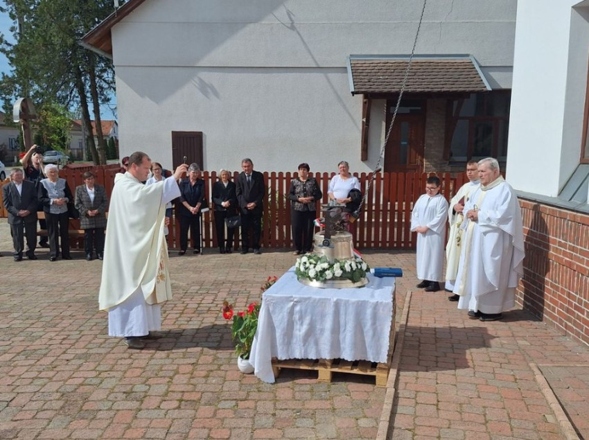 A szentmise prédikációjában Forgó Miklós megemlítette: a harangokkal, a hangjukkal üzenünk, ellentétes dolgokat fejezünk, fejezhetünk ki: figyelmeztet a veszélyre, hirdetheti a halált, hogy valaki elhunyt, de ünnepet és örömöt is. Ilyen örömhír, hogy új harangot kapott a templom, Csengele közössége.
