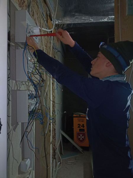 A 2023-as évet is Kárpátalján kezdtük Vazullal. Január 2-án indultunk, öt napot töltöttünk ott, és amit a fogorvosi rendelőben decemberben elkezdtünk, sikerült befejeznünk. Beépítettünk mintegy kétszáz méternyi vezetéket, tizennégy biztosítékot, egy fáziskapcsolót és megannyi szükséges apróságot.