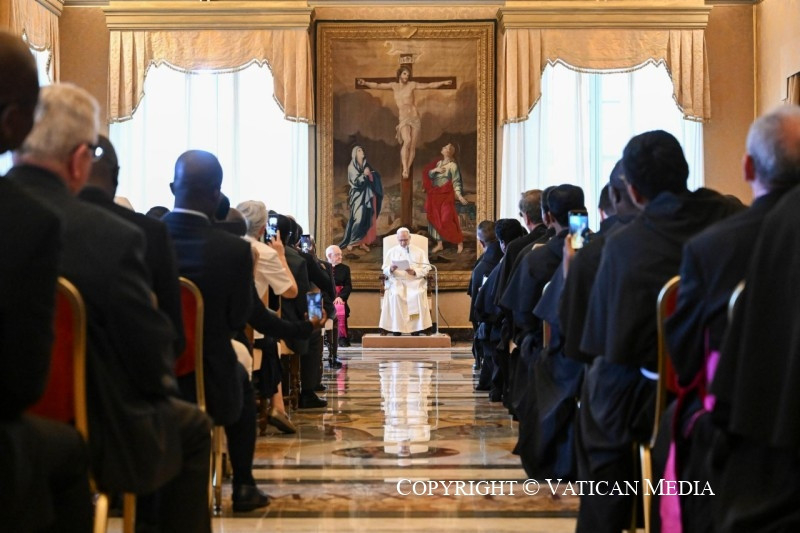 A Vigasztaló Szolgái jelenléte egy fontos dologra is emlékeztet bennünket: nevezetesen arra, hogy mindannyian – bár arra vagyunk hivatottak, hogy testvéreink számára Krisztusnak, a lelkek orvosának segítői legyünk (vö. Lk 5,31–32) – elsősorban betegek vagyunk, akik maguk is gyógyulásra szorulnak. Ahogy Szent Ágoston mondja, egy bárka képét használva: mindnyájunkban „ebben az életben mintegy halandóságunknak és gyarlóságunknak megfelelő repedések vannak, amelyeken keresztül ennek a kornak a hullámain belép a bűn”. A hippói szent püspök pedig gyógyírt is javasol a bajra: „Hogy üressé ne váljunk és el ne merüljünk”, bocsássunk meg, hogy mindenütt, „plébániáinkon, közösségeinkben, egyesületeinkben és mozgalmainkban, egyszóval mindenütt, ahol keresztények vannak, bárki megtalálhassa az irgalmasság oázisát”.