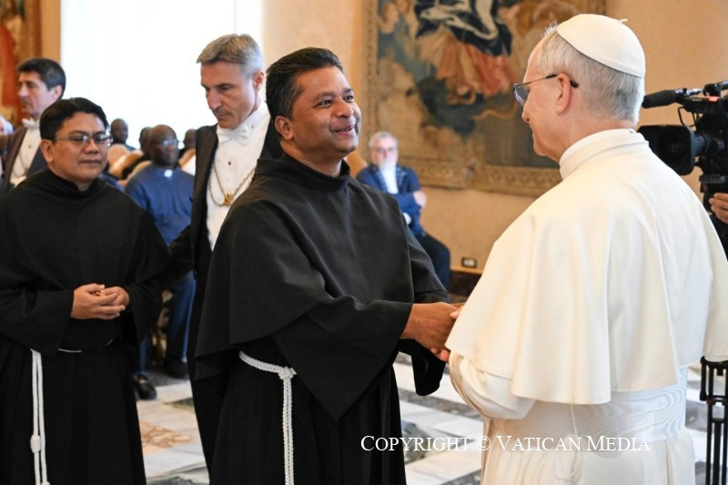 „Béke legyen veletek!” – köszöntötte a Szentatya a Konzisztórium teremben összegyűlt vendégeket, külön kiemelve az egyes káptalanokon most megválasztott új legfőbb rendi elöljárókat, és kérte: „imádkozzunk az Úrhoz a rendi közösségekért és minden megszentelt személyért, hogy bármely szerzetes intézmény tagjai – mindenekelőtt és egyedül Istent keresvén – a kontemplációt, mellyel szívvel-lélekkel hozzá kapcsolódnak, kössék össze az apostoli szeretettel, mellyel a Megváltó művéhez csatlakoznak és Isten országát akarják terjeszteni” – idézett Leó pápa a II. Vatikáni Zsinat Perfectae caritatis kezdetű konstitúciójából.