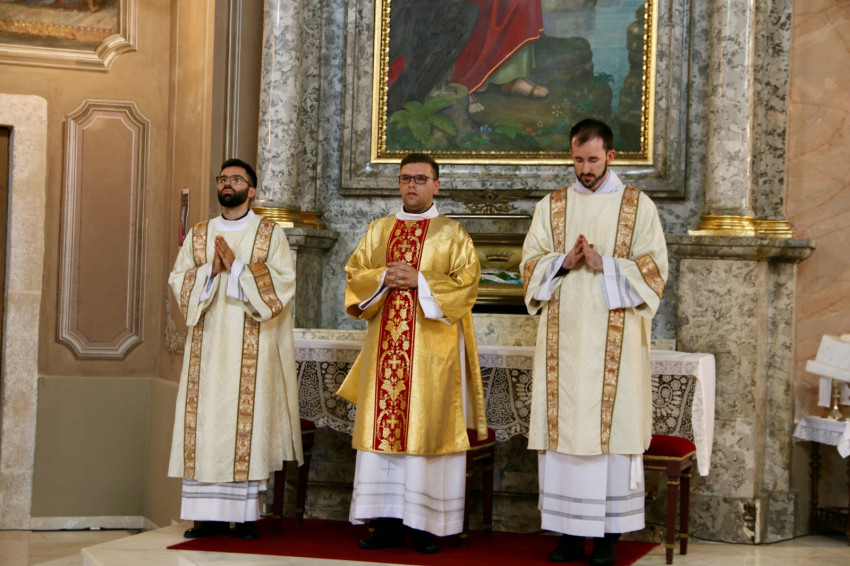 A Mindenszentek litániájának elimádkozását követően a püspök szerpappá szentelte Tempfli Mátét, Bîndăroi Alexandru Irimiat és Perez Gutierrez Pablot. A felszentelt diakónusok felöltötték magukra a (szerpapi módon viselt) stólát és dalmatikát, majd a főpásztortól átvették az evangéliumos könyvet, jelezvén, hogy a szentelésben hatalmat kaptak Isten igéjének hirdetésére.