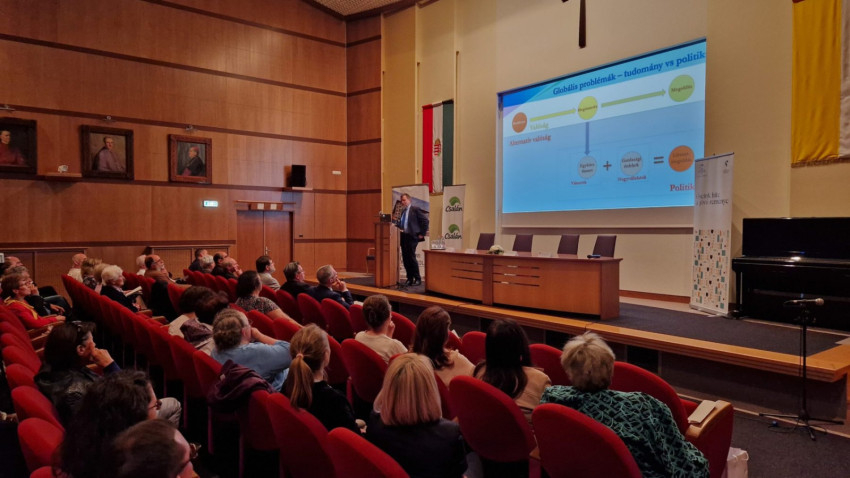 Őt Gelencsér András, a Pannon Egyetem rektora követte, aki bemutatta, milyen tragikus irányba haladunk a Föld „használatát” tekintve, hihetetlenül gyors tempóban aknázzuk ki ugyanis bolygónk energia- és anyagkészleteit, amelyek elég korlátozott mennyiségben állnak rendelkezésünkre. A kiutat nagyon nehéz megtalálni. A jó hír az, hogy létezik megoldás, de nagyon sokat kellene érte tennünk – figyelmeztetett a professzor.