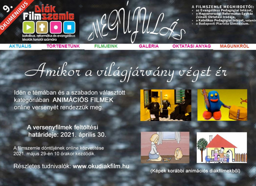 A filmek műfaja: A járvány miatt nem biztathatunk most nagy összefogással megvalósuló filmek készítésére, ezért mindkét kategóriában csak animációs filmeket várunk (ilyeneket akár 1-2 fős stáb is alkothat).