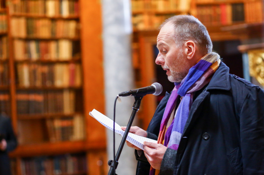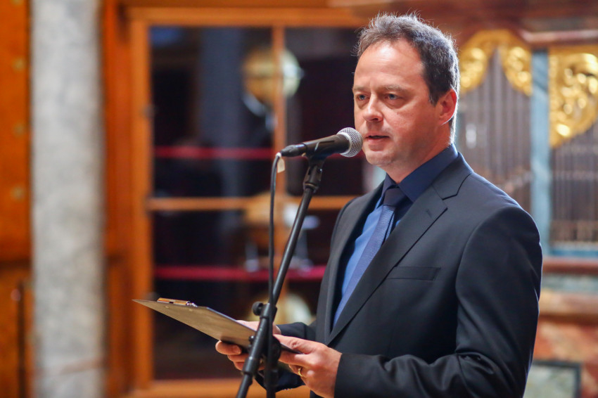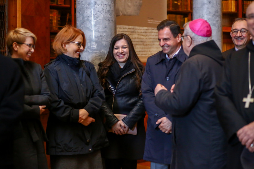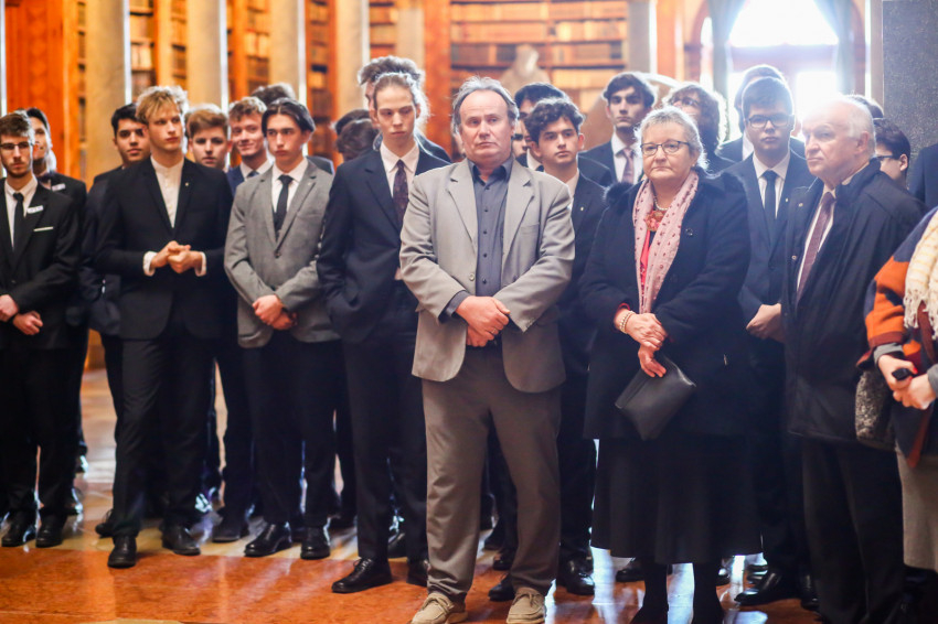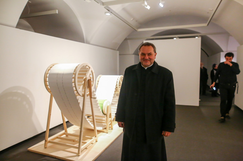 Bazsányi Sándor irodalomtörténész, esztéta a művészetnek e közvetítő szerepéről osztotta meg gondolatait a jelenlévőkkel. „A művészet az a hely, tapasztalat, hívás, amely leginkább felszólíthat a megújulásra, megújításra. A Katolikus Egyház régiségénél fogva nem engedheti meg magának, hogy ne éppen a megújulás legyen a legfőbb témája, vagy legalábbis legfőbb témái szóba hozatalának módja – mondta, hozzátéve: – Csakis így, folytonosan megújuló voltában, a lelki, szellemi és intézményes kulturális megújulás változatos formái révén válhat képessé arra, hogy rákérdezzen saját megváltoztathatatlan alapjára. Pontosabban az alaphoz, ama bizonyos szegletkőhöz való viszonyára, hogy ne csak kiüresített dísznek, álságossá maszatolt cirádának bizonyuljon az épület boltozatát egyben tartó zárókőre faragott képmás, Krisztus arca.”