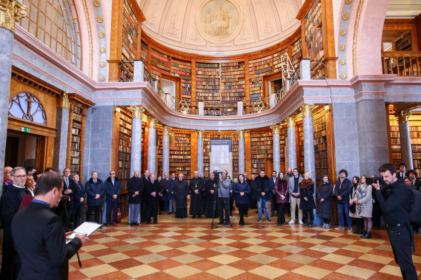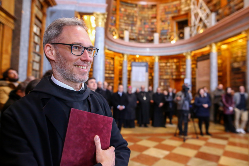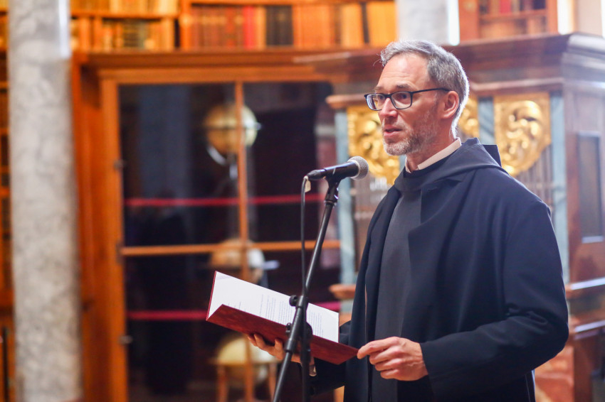 A Megújulás címet viselő tematikus tárlatot a rendalapító tiszteletére tartott ünnepélyes konventmisét követően a főapátság kulturális igazgatója; Bazsányi Sándor irodalomtörténész, irodalomkritikus, esztéta, a Pázmány Péter Katolikus Egyetem docense, valamint Don Tamás kurátor nyitották meg a Főapátsági Könyvtár épületében.