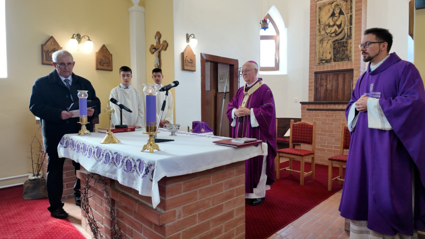A főpásztort köszöntő Danyi László, az egyházközség világi elnöke felidézte a múlt eseményeit, miszerint a II. világháború után a helyi közösség felekezettől függetlenül összefogott, és fél év alatt felépítették az épületet. „Templomunk az összetartozás biztos bástyája. A feladatunk az, hogy megőrizzük és élettel töltsük meg ezeket a falakat.”