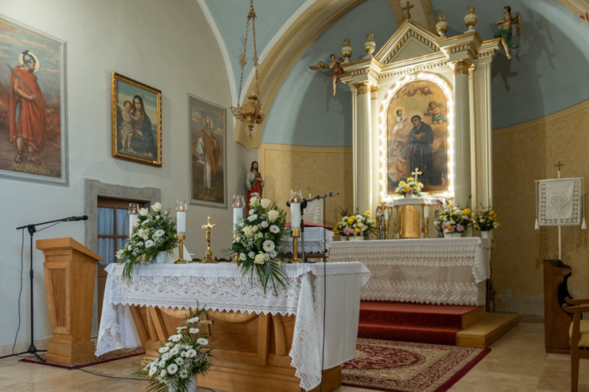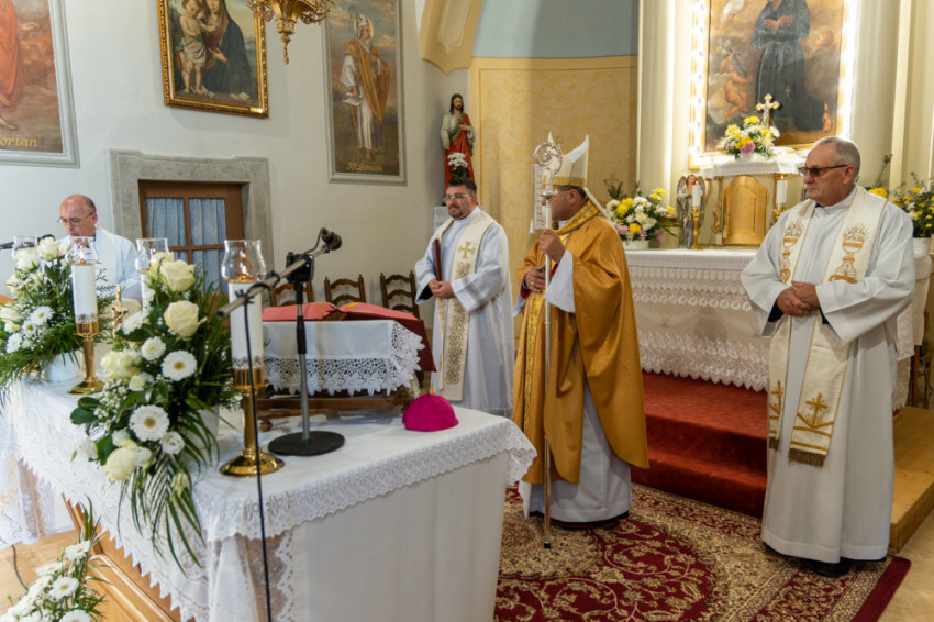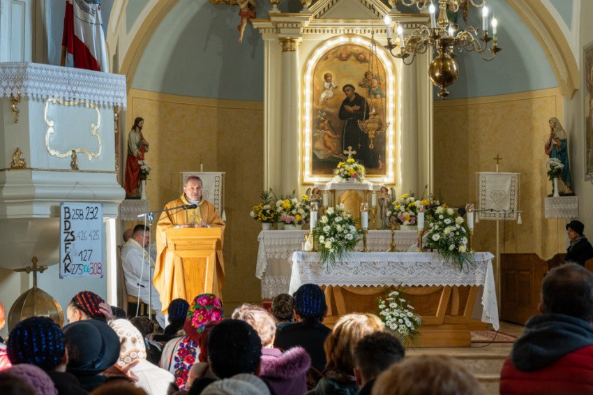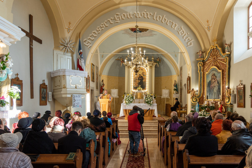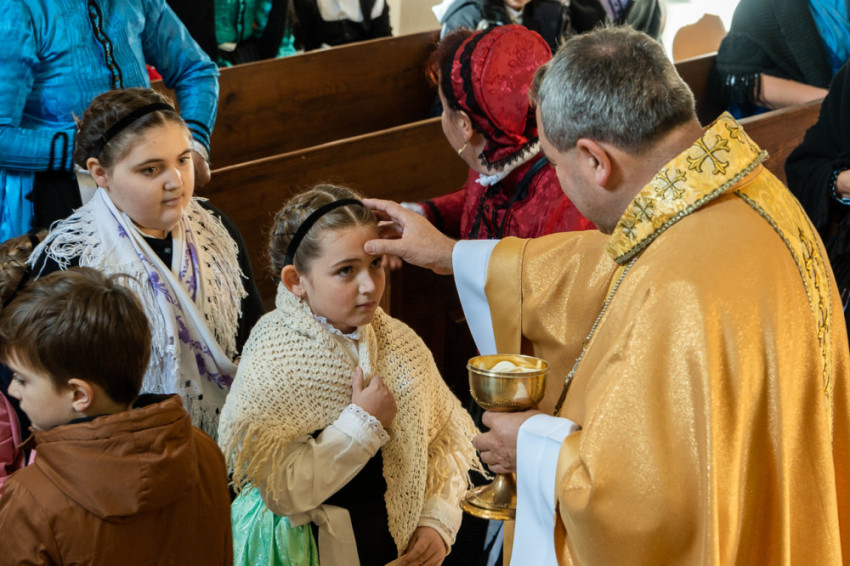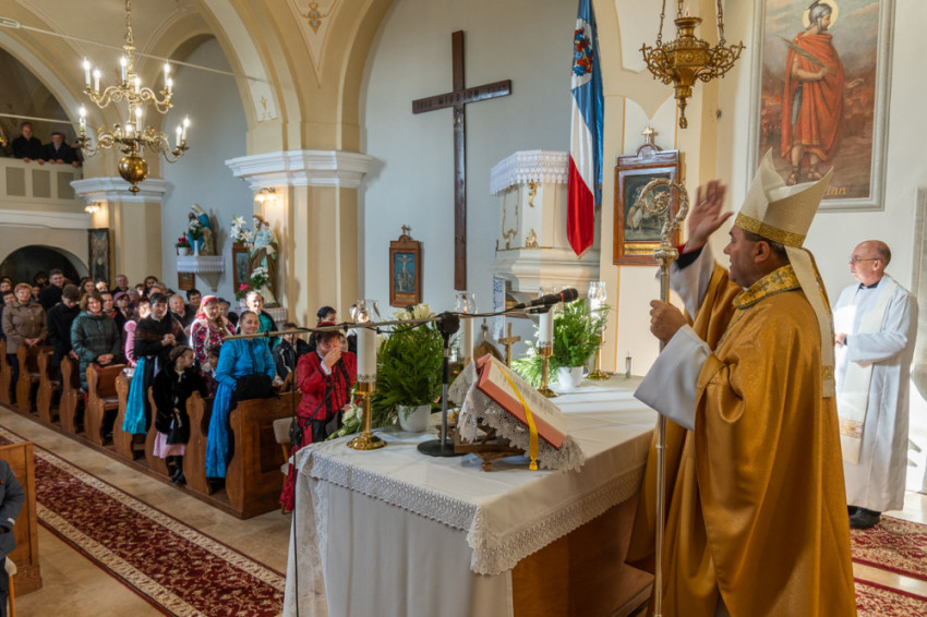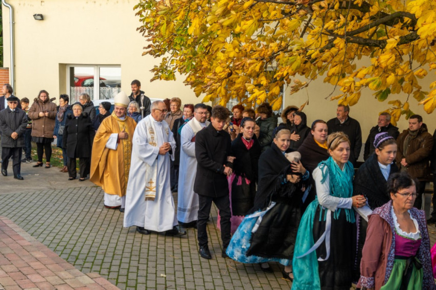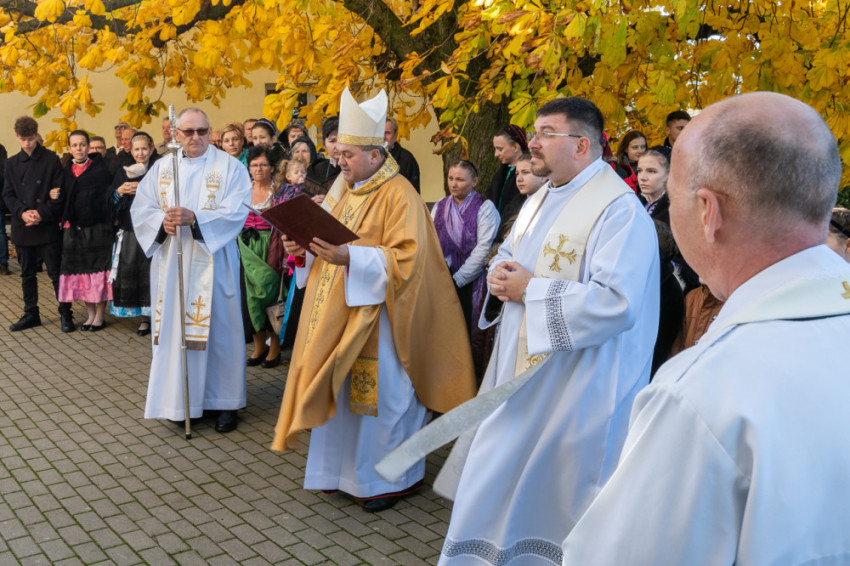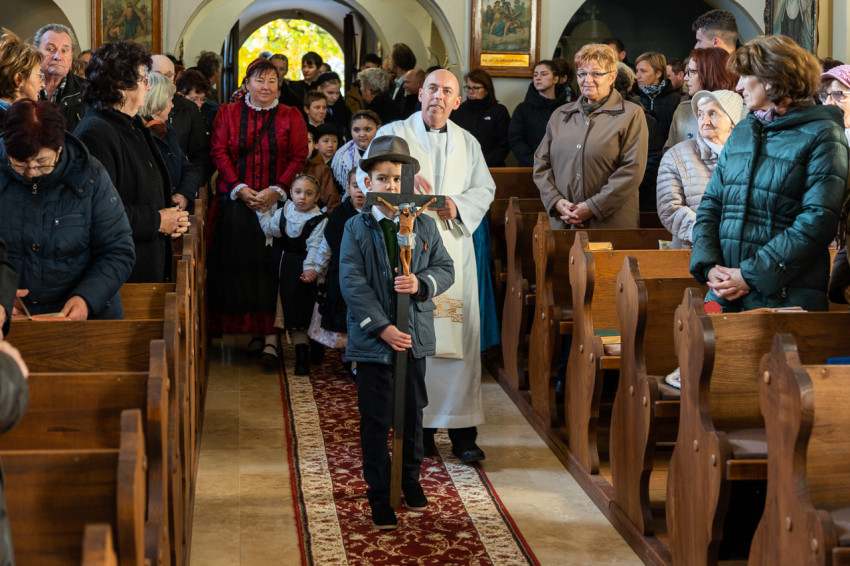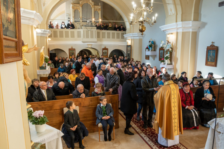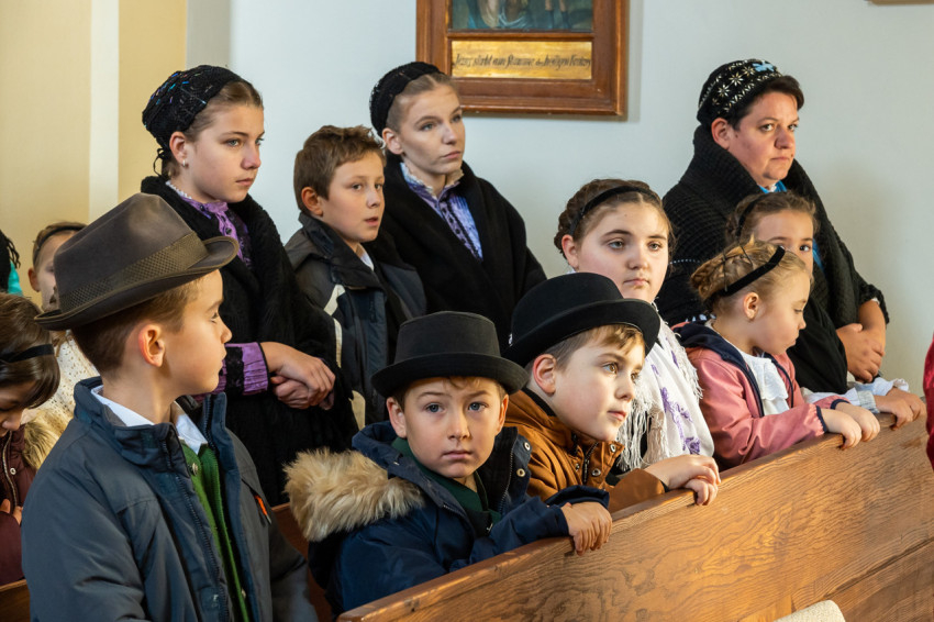 A püspöki áldást követően vonultak be a hívek a Páduai Szent Antal-templomba, köztük a gyönyörű népviseletbe öltözött felnőttek és gyermekek, hogy méltó módon, ünnepi szentmisén adjanak hálát azért, hogy megvalósulhatott a templom felújítása.