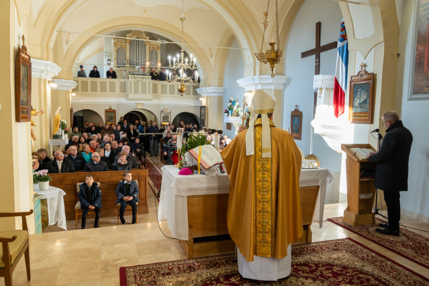 A közösség képviseletében Wilhelm József rövid beszédében felelevenítette, hogy már 2015-ben, a templom belső felújításának idején megfogalmazódott az épület külső felújításának gondolata, amit nyolc évvel később siker koronázott. A hásságyi önkormányzat képviselő-testülete 2022-ben kezdeményezte – Felföldi László pécsi megyéspüspök jóváhagyásával – az önkormányzati és egyházmegyei forrásokból, valamint magánszemélyek adakozásából megvalósuló felújítást.