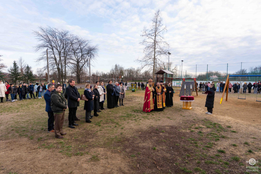Az imaórát követően a felnőttek és a gyermekek is kivonultak a játszótérre, ahol a püspök megáldotta a megújult eszközöket. Itt köszöntötte őt a közösség nevében az egyik tanuló, mondván: ez a játszótér immár sokkal többet jelent számukra, mint a játék tere. „Látom benne mindazt, amit nem lehet kézzel megfogni. A szülők erejét, akik időt és fáradságot nem sajnálva dolgoztak érte, a pedagógusok szeretetét, akik nemcsak tanítanak, hanem vigyáznak ránk, óvnak minket.”