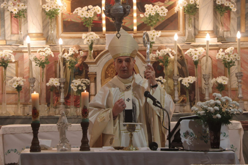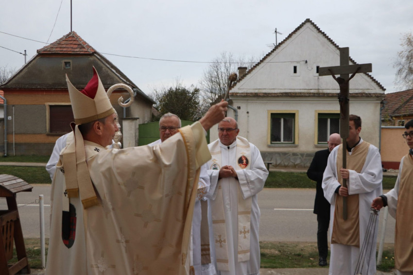 A köszöntő után elhangzott a templom története, majd a főpásztor megáldotta a felújított falakat, végül felkérte a jelenlévőket, hogy együtt menjenek be Isten házába, ahol a legszentebb áldozat bemutatásával ünnepeltek tovább.
