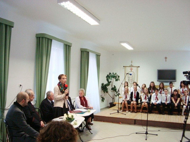Ezután az Impulzus Kft. képviselője ismertette a cég által kidolgozott pályázat részleteit, majd a gyerekek műsorát követően Pápai Lajos megyéspüspök megáldotta az iskola megújult épületegyüttesét.