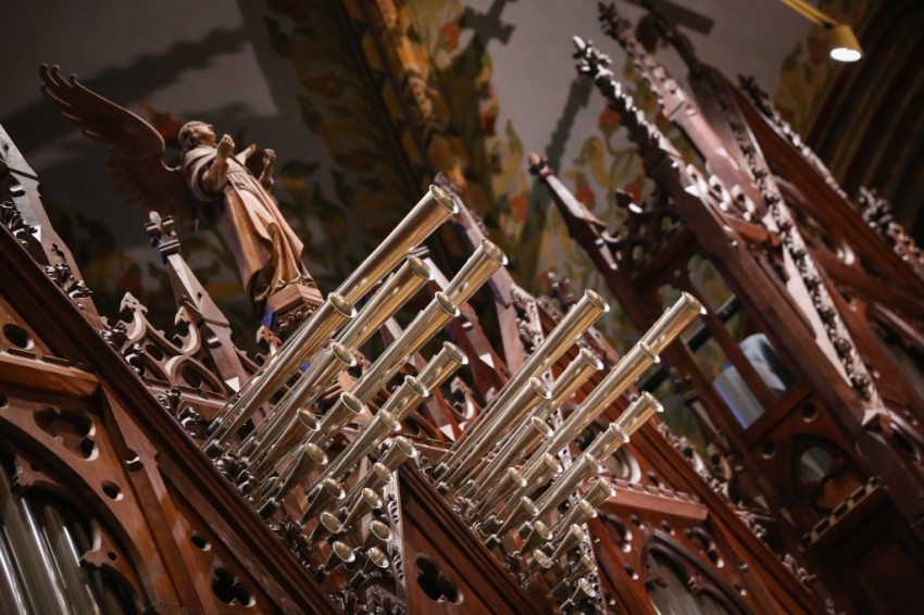A 111 regiszter összesen 7771 sípot és 18 csőharangot foglal magában. Az orgonaművész segített elképzelni a 111 regisztert: olyan, mintha egy 111 tagú zenekar játszana. Elmondta továbbá, hogy a legnagyobb síp 10,6 méter hosszú. Hozzátette, hogy ilyen hosszú síp nem fér el a rendelkezésre álló térben, ezért a hosszabb sípok fel vannak tekerve, mint egy kürt. A legnagyobb sípokba egy kisgyerek beleférne; míg a legkisebb sípok 8 milliméteresek.
