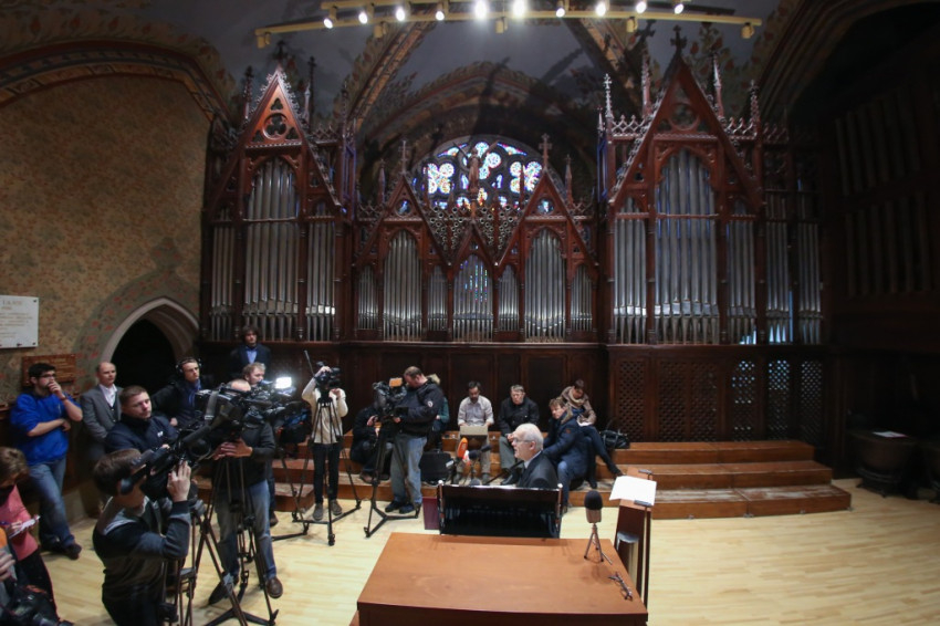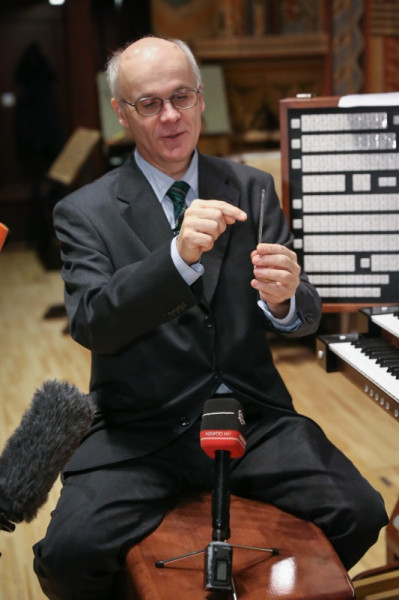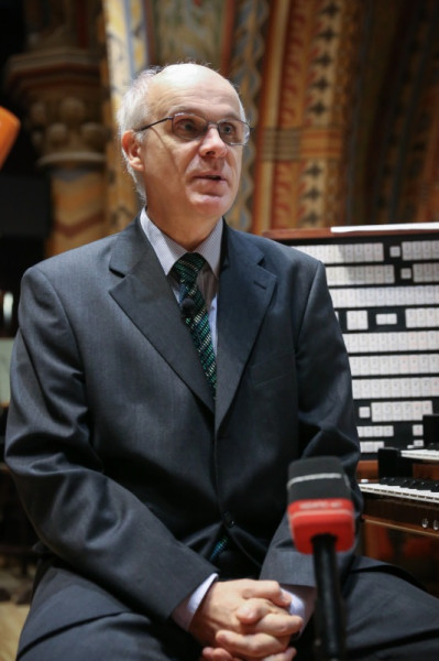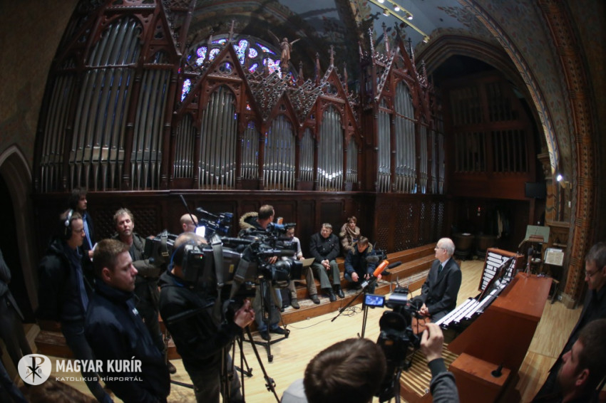 Hock Bertalan orgonaművész mutatta be a sajtó képviselőinek a megújult hangszert. Elmondta, hogy az orgona szekrénye már 1893-ban elkészült Schulek Frigyes tervei alapján, azonban a benne elhelyezett hangszer nem felelt meg a templom egyházzenei igényeinek. 1909-ben készült el Rieger Ottó budapesti gyárában a „királyi orgona” abból az 50 000 koronából, amelyet Ferenc József adományozott koronázásának negyvenedik évfordulója alkalmából. A hangszert azóta többször átépítették. Az 1931-es felújítást követően a második világháború alatt súlyosan megsérült, 1947-ben megjavították. Teljes felújításra azonban ekkor nem került sor, ez csak 1983–84-ben vált lehetővé a csehországi Rieger-Kloss orgonagyárban.