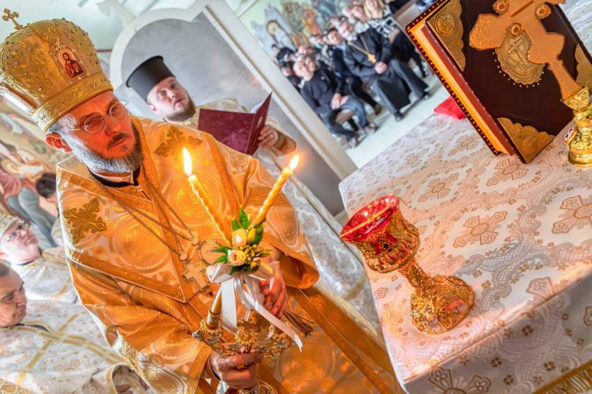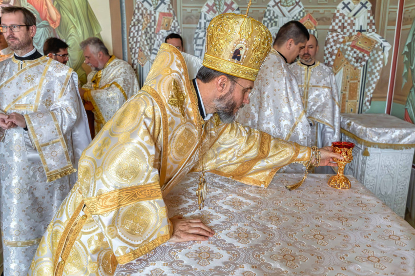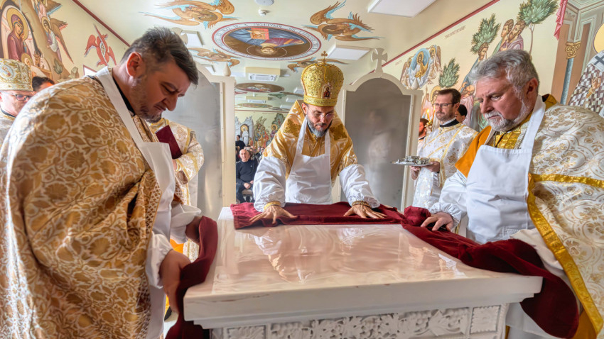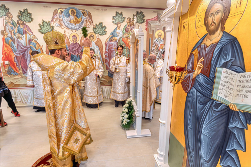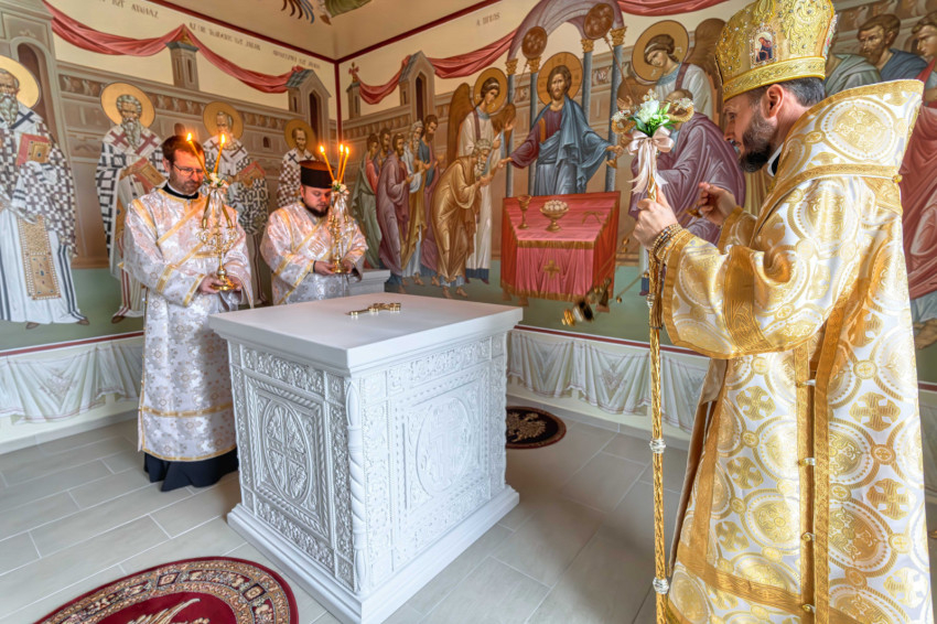 A püspökségi dolgozók heti közös imádságának helyszínt adó liturgikus tér a közelmúltban teljes figurális festést kapott, amelynek befejeztével új oltárt helyeztek el a szentélyben. A keleti hagyomány szerint az oltár Krisztust jelképezi, ezért szentelése különös jelentőséggel bír: a szertartás során a püspök tömjénezéssel, szenteltvízzel és vörösborral vegyített rózsavízzel tisztította meg a felületet, majd miroválta azt. A rítus Krisztus keresztelkedését, áldozatát és sírba tételét szimbolizálja.