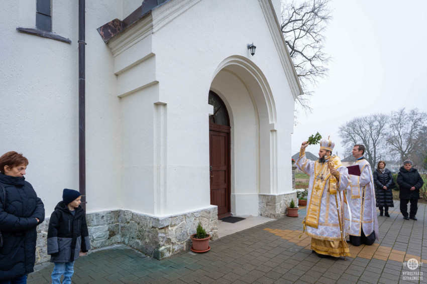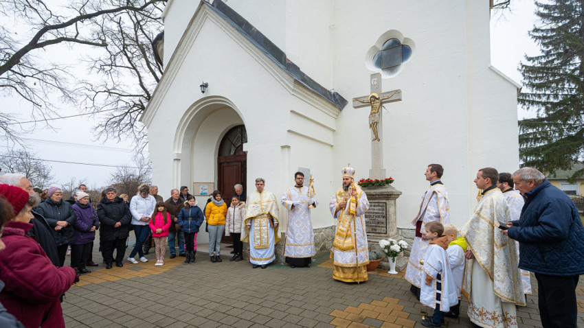 A Szent Liturgia után a főpásztor és a hívek kivonultak a templom elé, ahol Szocska Ábel püspök megáldotta a felújított keresztet.