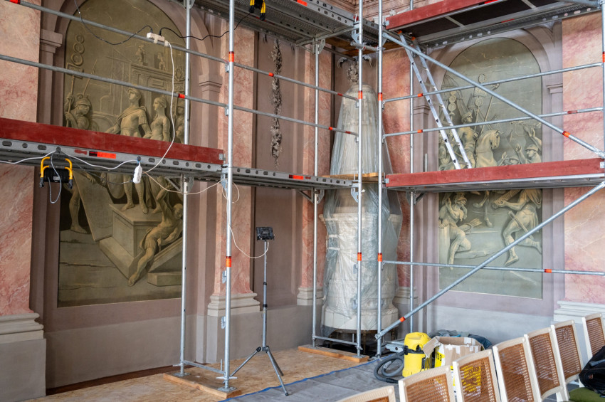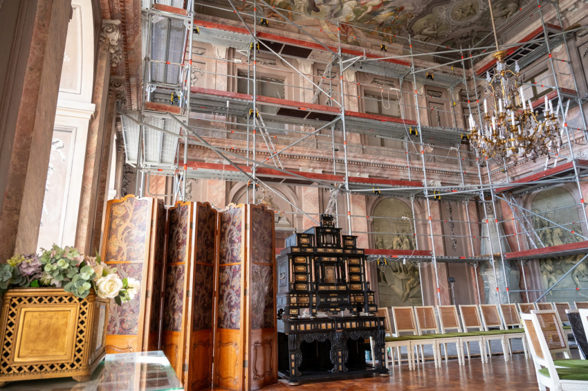 A tervek szerint a keleti oldal felújításával idén nyárra, a termet festő művész, Franz Anton Maulbertsch születésének 300. évfordulójára befejeződik a díszterem több éven át tartó helyreállítása.
