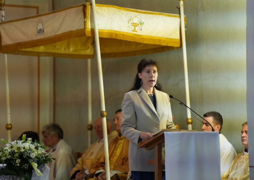 Az államtitkár többek között arról beszélt, hogy míg Nyugat-Európában keresztény templomokat rombolnak le, vagy megváltoztatják az épületek funkcióját, Magyarországon felújítják ezeket, sőt újakat építenek, éppen a német nemzetiség kezdeményezésére. Azt az utat kell választani, amelyet egyházainkkal, püspökeinkkel, papjainkkal, hitoktatóinkkal és a hívekkel együtt felvállaltunk. Ez pedig arról szól, hogy nem leromboljuk, hanem megőrizzük azokat, sőt ha tudunk, újakat építünk – hangsúlyozta beszédében Soltész Miklós.