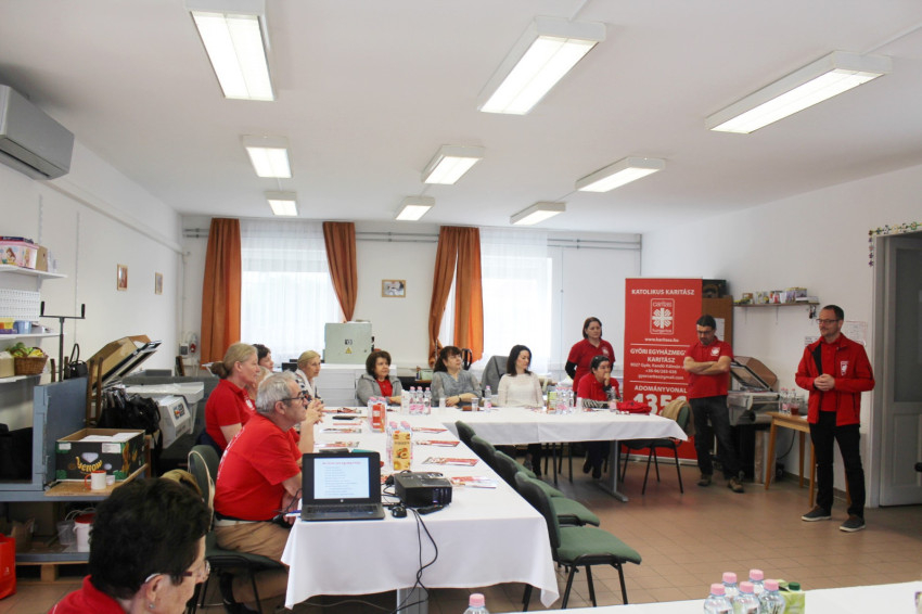 A közös imádsággal, majd Lőrincz Attila igazgató köszöntőszavaival kezdődő program során a csoportvezetők megvitatták az elmúlt félév tapasztalatait, illetve az elkövetkezendő hónapok karitászakcióinak lehetőségeit, kihívásait. Az országos és egyházmegyei szervezésű támogató projektek részletei mellett a felmerülő aktuális kérdésekre is válaszoltak a győri karitászközpont munkatársai, illetve a résztvevők külön előadás keretében hallhattak az egységes arculat és kommunikáció fontosságáról.
