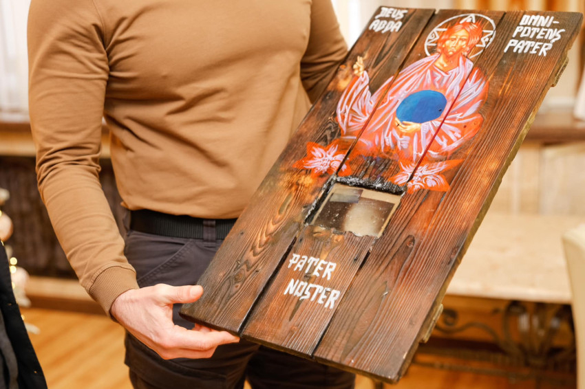 Viktor Mikita hálájának jeléül Hubert Kamp lengyel önkéntes és ikonfestő egyik művét ajándékozta a püspöknek. Az alkotás különlegessége, hogy alapjául a frontról hozott lőszeres doboz egyik tábláját használták fel. A püspök lelki olvasmányt hozott ajándékba a kormányzónak.