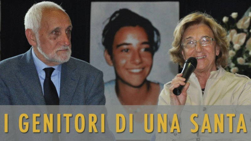 Ruggero és Maria Teresa Badano tanúságtétele. Felirat: Egy szent szülei