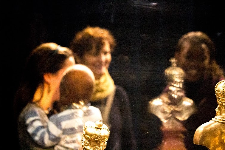 Elsőként a kincstárban speciális körülmények között őrzött, az 1031-es évre datálható koronázási palástot mutatta be, majd felhívta a figyelmet arra a szintén itt látható két vasládára, amelyekben a koronázási ékszereket, illetve a királyválasztáskor az újonnan megkoronázott uralkodónak szánt ajándékokat tárolták. A koronázási palást motívumainak bemutatása különös érdeklődésre tartott számot.