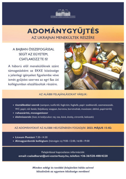Az adományokat május 15-ig várják a Líceum Postázóban és az Almagyardombi Kollégiumban.