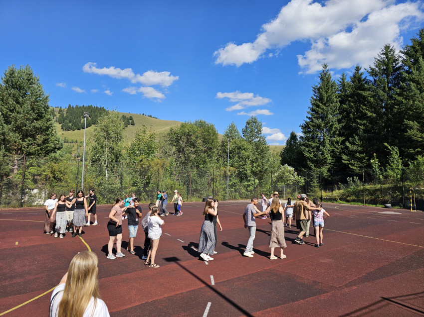 Ebéd után Bőjte Róbert tánctanár segítségével betekintést nyertünk a csíkszentdomokosi néptánctáncba, együtt és párban is megmozgattuk magunkat a különféle dallamokra.