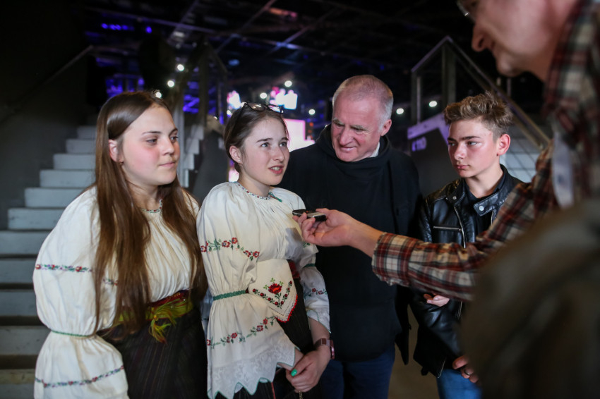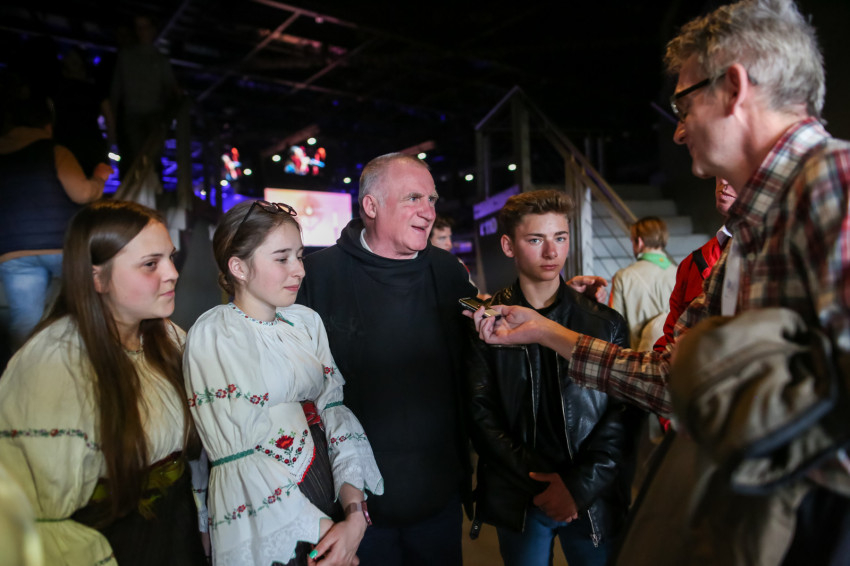 Az Arénába eljött Böjte Csaba ferences szerzetes is több mint félszáz fiatallal, akik jelenleg a dévai, illetve a gyergyószentmiklósi gyermekotthonban élnek. Amikor Csaba testvért megszólítjuk, hamar maga köré gyűjt több gyermeket is (köztük csángó, népviseletbe öltözött lányokat, gyergyói fiúkat), akik válaszolhatnak a pápával és az ő üzenetével kapcsolatos kérdéseinkre.