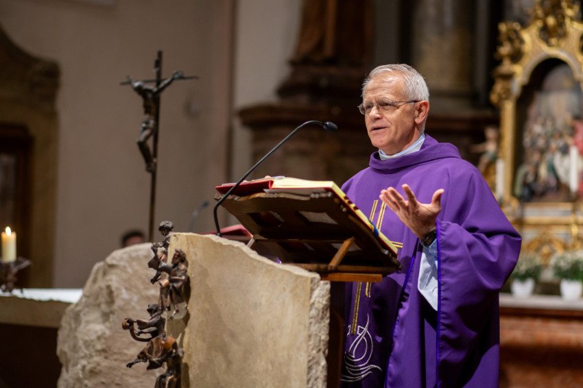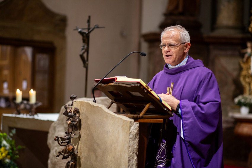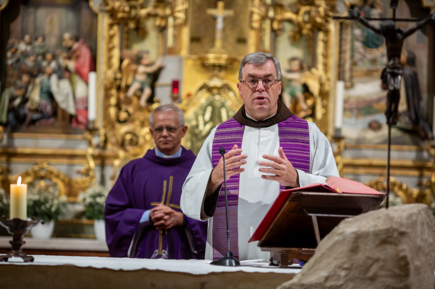 Homíliájában Holczinger Ferenc kiemelte: tagadhatatlan, hogy szomorúsággal tölt el bennünket egy tanár vagy egy diák halála. A napokban hunyt el egy kollégája, aki hosszú évek óta a barátja is volt, rengeteg szabadidős programot szerveztek együtt; bejárták egész Európát, diákokat kísértek kerékpártúrákra, egyéb rendezvényekre. P. Ferencnek nagyon nehéz volt elfogadnia, hogy a kollégája és barátja viszonylag fiatalon távozott e földi létből. Ám a halál elkerülhetetlen, csak idő kérdése és mindannyiunkat magához szólít a Teremtő. A szónok felidézte: évekkel ezelőtt műtét előtt állt, megkérdezte az orvost, mindenképpen muszáj alávetnie magát a beavatkozásnak. Az egykor szintén egyházi iskolában tanuló doktor azt válaszolta: egyetlenegy dolog muszáj, az a halál, a Teremtővel egyszer mindenki szembe fog nézni.